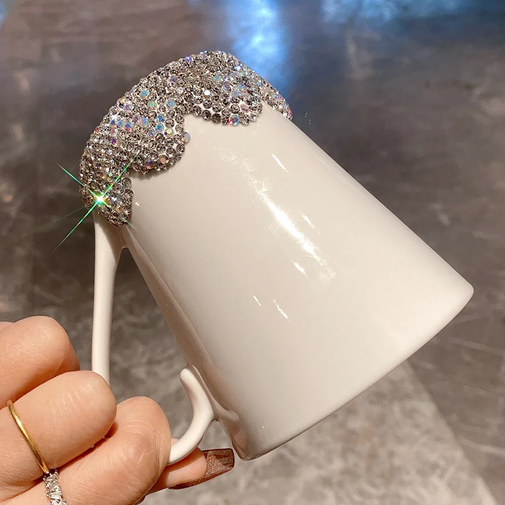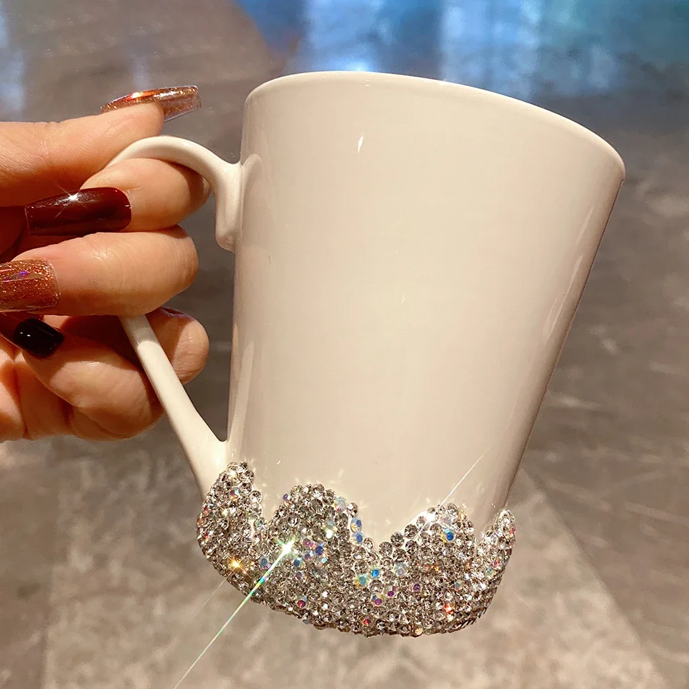 300ml Sparkling Rhinestone Ceramic Coffee Mug Handle Cup Coffee Cups Tumbler Tea Milk Mug Luxury Water Bottle Bling Lover's Gift