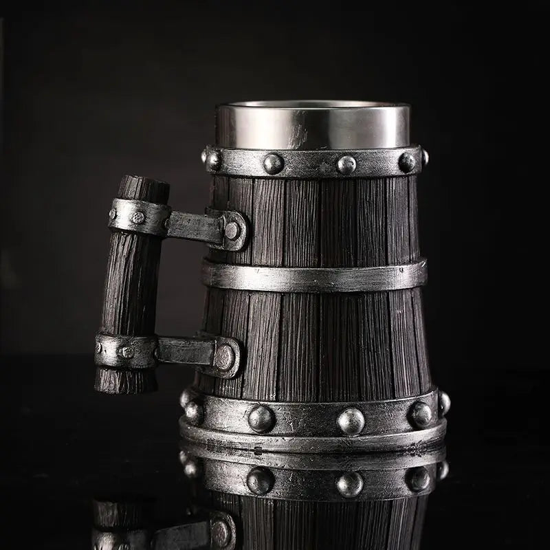 Wood Grain Beer Glass Resin Stainless Steel Mug Imitation Barrel Beer Steins Tankard Coffee Cup Tea Tumbler Drinkware Bar Decor